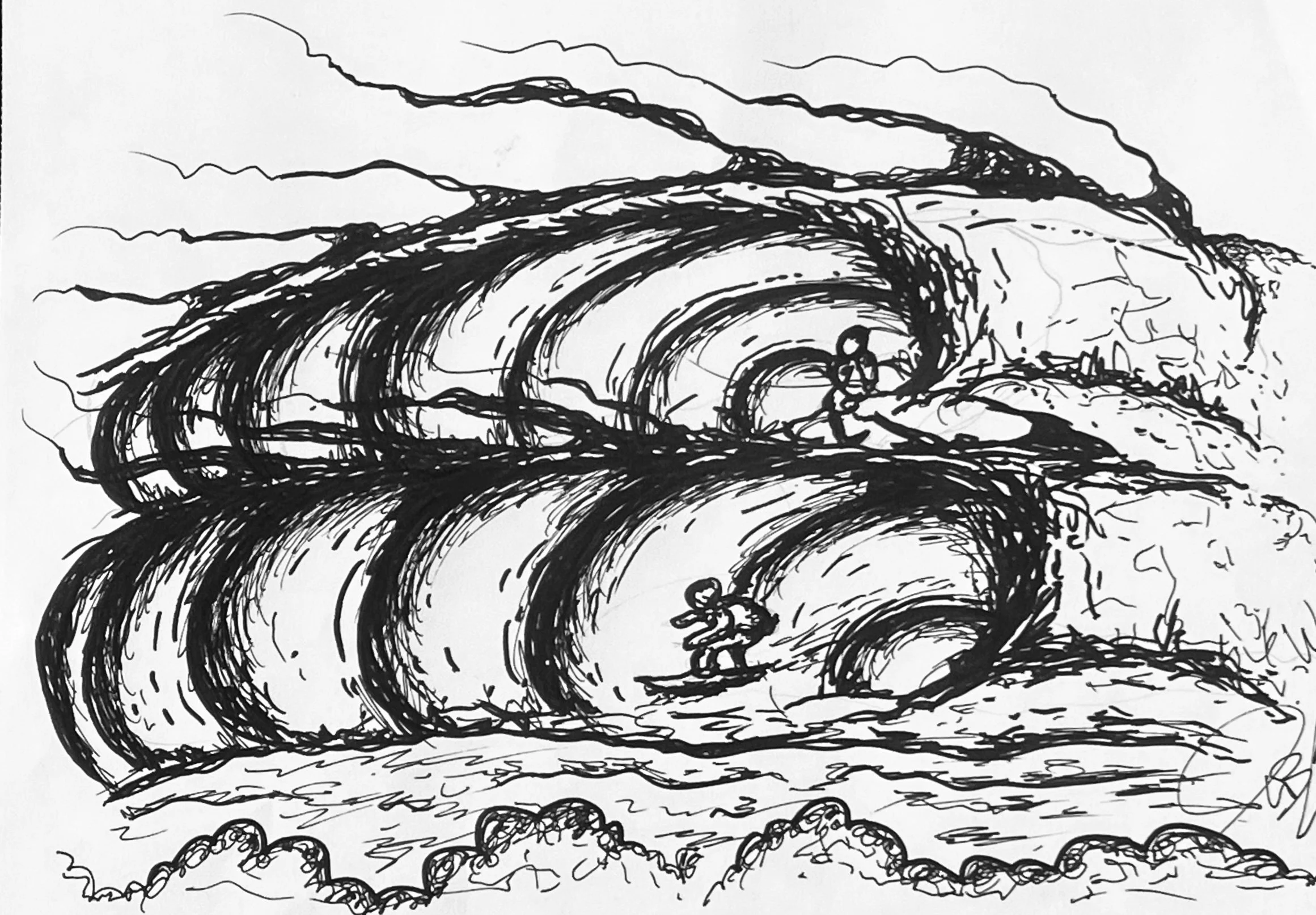 I’m taking on a 21-day illustration challenge! Every day, for the next 21 days, I’ll be creating a new pen and ink drawing inspired by big wave surfing — all drawn by hand, straight from paper to heart.